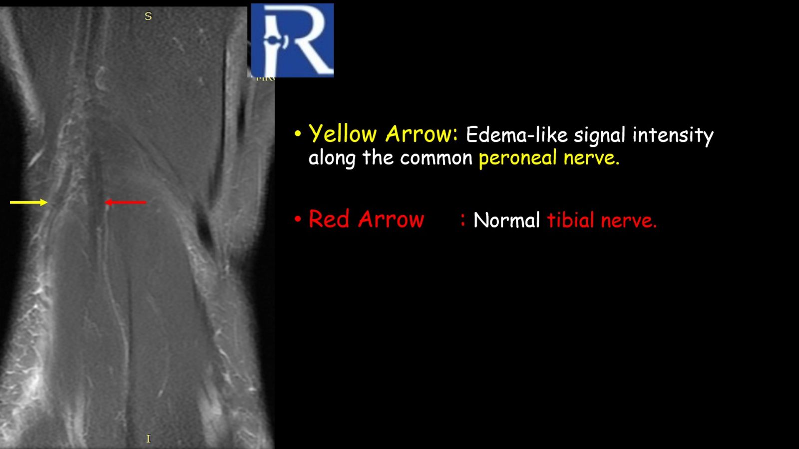 Cruciate ligament injuries were also present, with a complete tear of the anterior cruciate ligament (ACL) and a near–full-thickness high-grade partial tear of the proximal posterior cruciate ligament (PCL). Additional associated findings included a high-grade partial tear of the lateral retinaculum, strain-related signal changes in the medial retinaculum and medial collateral ligament, and edema-like signal along the common peroneal nerve. The menisci, patellofemoral alignment, patellar cartilage, and extensor mechanism were otherwise preserved.