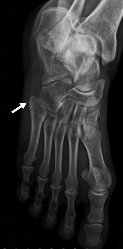 A 29-year-old man presented to the emergency department with pain in the 5th metatarsal following an ankle sprain.