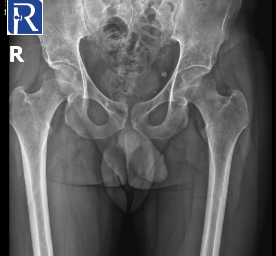Demographic and clinical details: 33-years-old male, admitted with left hip pain starting 3 weeks ago.